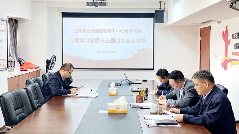 11月22日上午,浙茶集团党委理论学习中心组召开学习会,专题学习省委十五届四次全会精神,并交流学习体会。集团党委书记、董事长陈星主持会议并讲话,党委副书记、总经理王兵作中心发言,其他党委班子成员作交流发言。